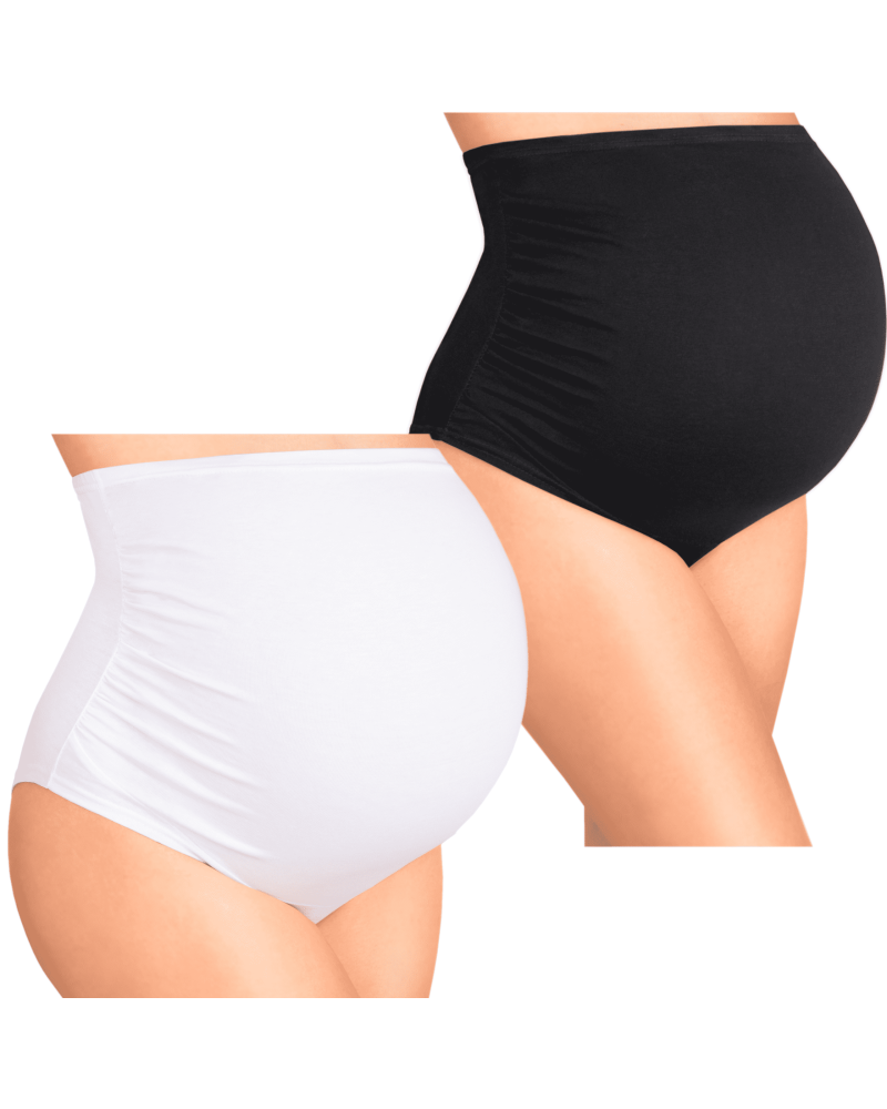 BAWEŁNIANE MAJTKI CIĄŻOWE ZOJA– NA DUŻY BRZUSZEK- białe + czarne 2 sztuki
