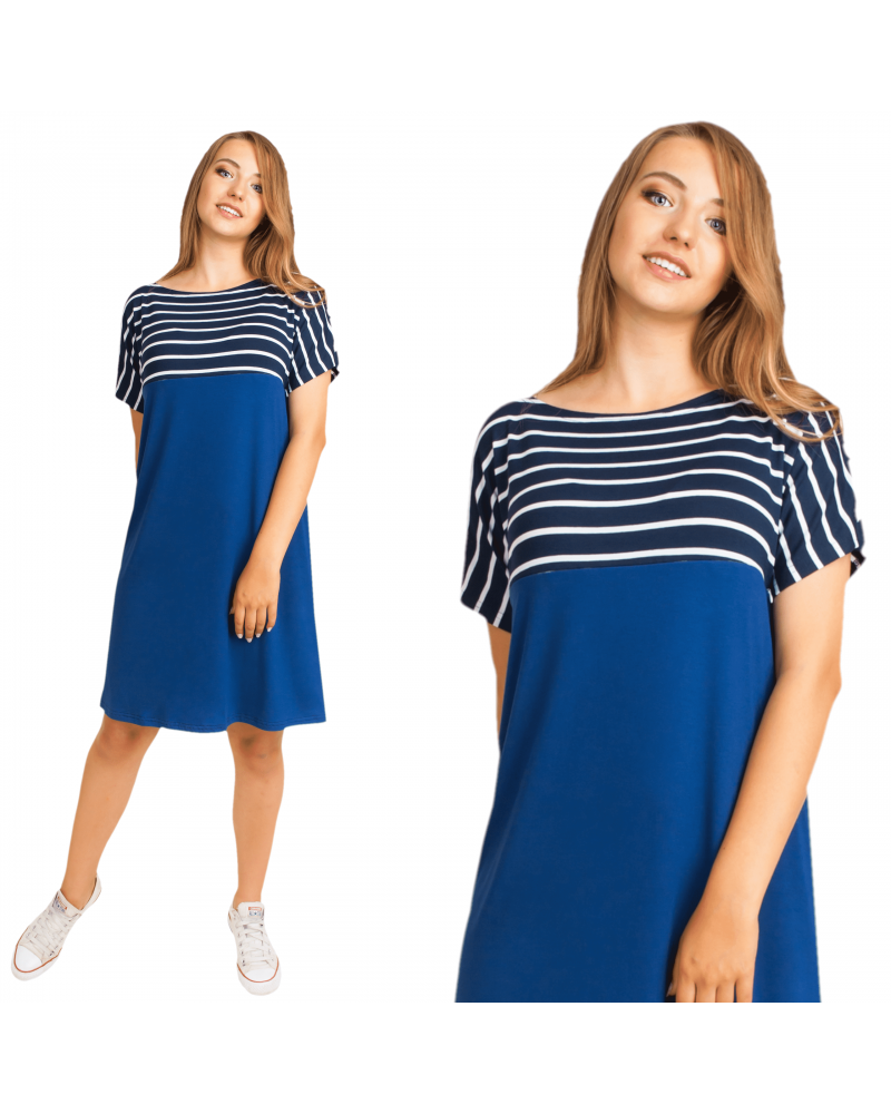 Sukienka ciążowa i do karmienia piersią z lekkiej wiskozy o długości przed kolano.